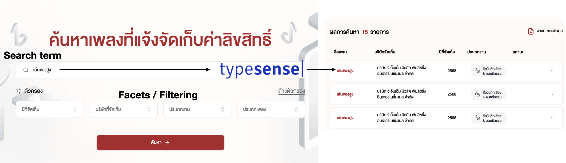 ช่วงปีที่ผ่านมาทางทีมของผมและทีมจากบริษัท ฟังใจ ได้มีโอกาสทำระบบค้นหาเพลงที่แจ้งจัดเก็บค่าลิขสิทธิ์ จริงๆไอเดียนี้ผม กุกกิก และทีมฟังใจมีแนวคิดที่จะพัฒนากันมานานตั้งแต่ช่วงโควิด และเราได้คุยกับทางกรมทรัพสินทางปัญญามาสักพักหนึ่งเนื่องจากอยากที่จะทำระบบออกมาให้ประชาชนเข้าถึงและค้นหาเพลงได้ง่ายขึ้นเนื่องจากระบบเดิมยังไม่ตอบโจทย์ในหลายด้าน: ค้นหาเพลงได้ยาก, ระบบการตรวจเพลงซ้ำซ้อนทำงานได้ช้า, หน้าตาเหมือนระบบทั่วไปที่เข้ามาค้นหาข้อมูลได้ยาก